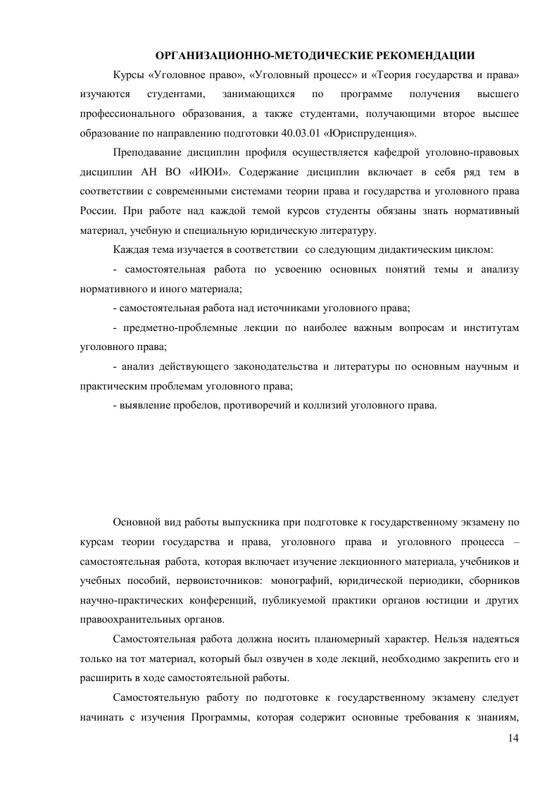• ГОСЭКЗАМЕН ПО СПЕЦИАЛЬНОСТИ: ПРАВООХРАНИТЕЛЬНАЯ ДЕЯТЕЛЬНОСТЬ