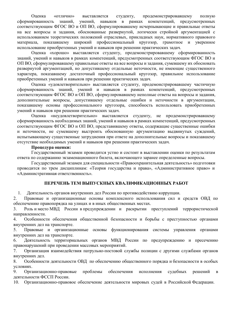 • ГОСЭКЗАМЕН ПО СПЕЦИАЛЬНОСТИ: ПРАВООХРАНИТЕЛЬНАЯ ДЕЯТЕЛЬНОСТЬ
