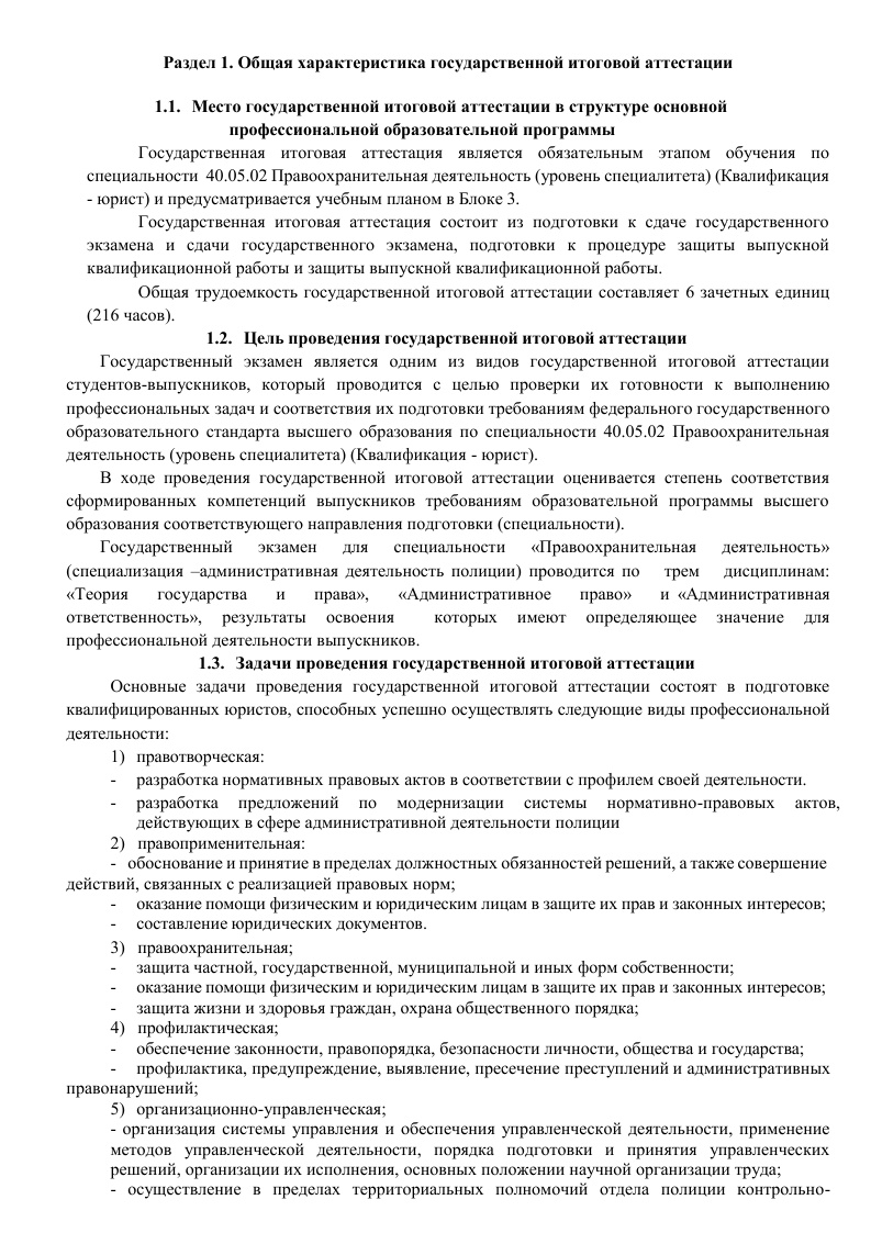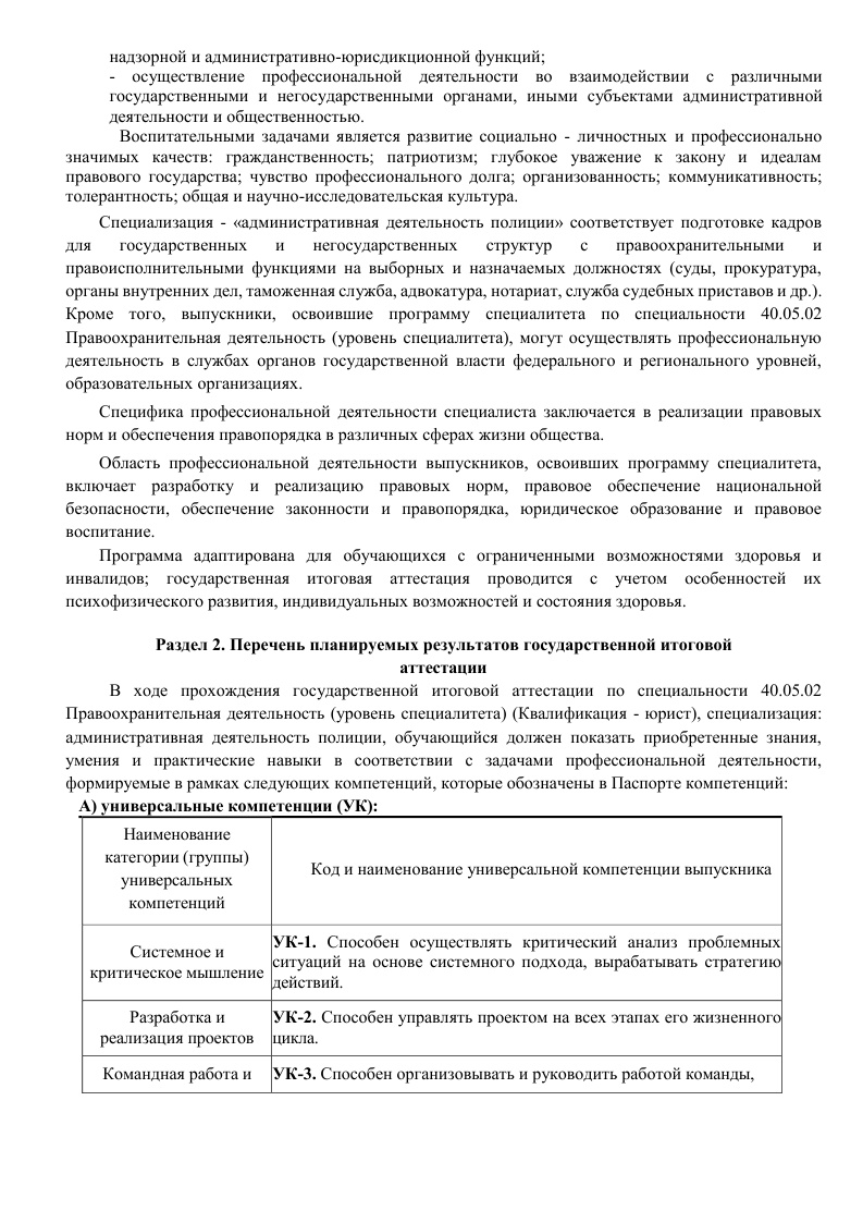 • ОП ПО СПЕЦИАЛЬНОСТИ 40.05.02 ПРАВООХРАНИТЕЛЬНАЯ ДЕЯТЕЛЬНОСТЬ (СПЕЦИАЛИЗАЦИЯ АДМИНИСТРАТИВНАЯ ДЕЯТЕЛЬНОСТЬ ПОЛИЦИИ) СПЕЦИАЛИТЕТ