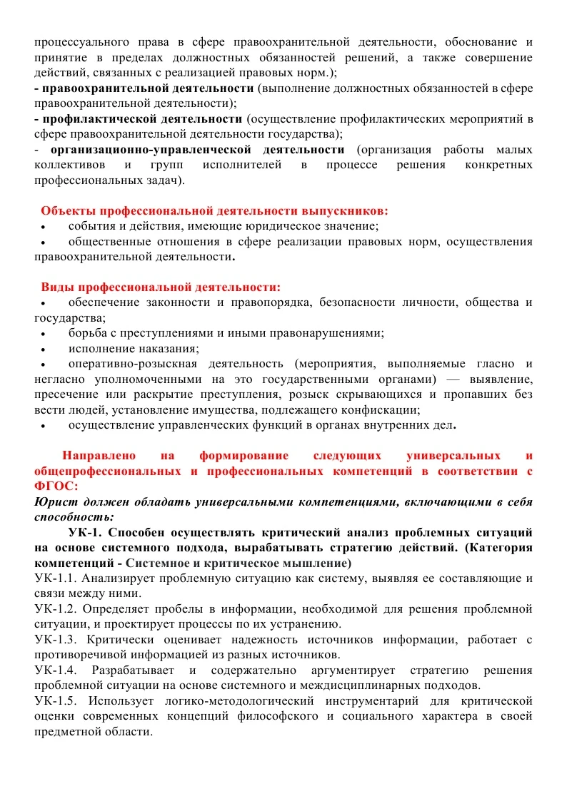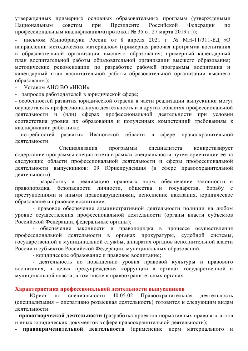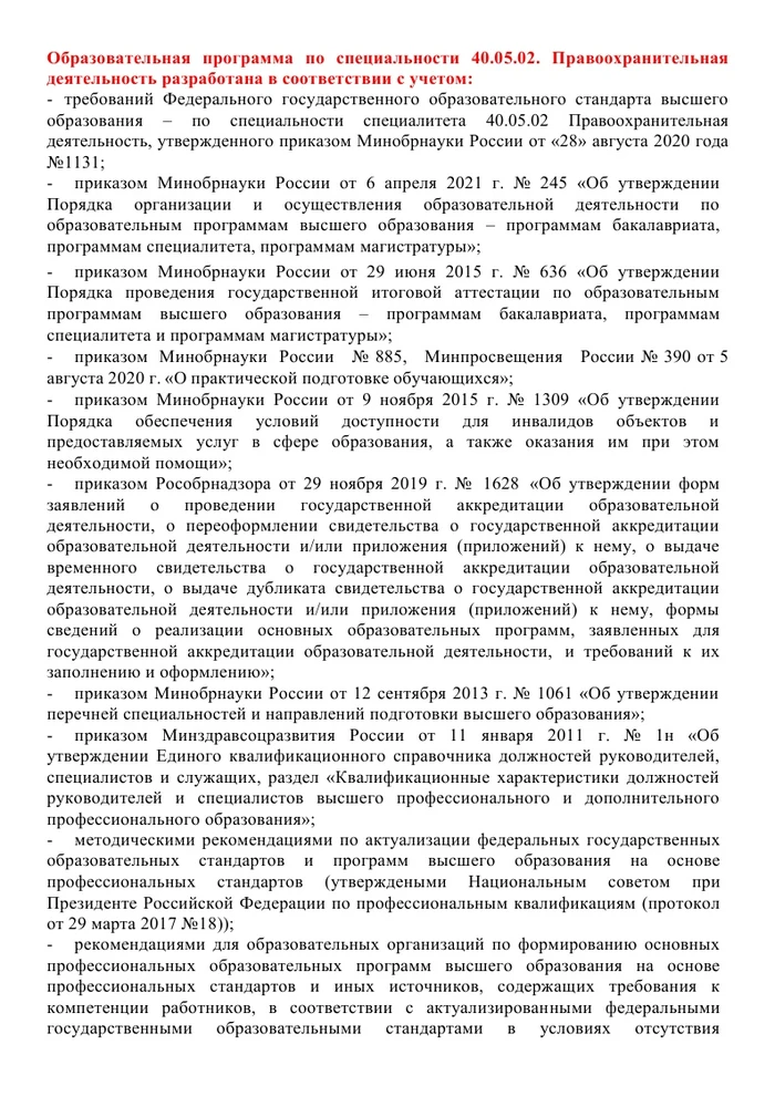 • ОП ПО СПЕЦИАЛЬНОСТИ 40.05.02 ПРАВООХРАНИТЕЛЬНАЯ ДЕЯТЕЛЬНОСТЬ (СПЕЦИАЛИЗАЦИЯ-ОПЕРАТИВНО-РОЗЫСКНАЯ ДЕЯТЕЛЬНОСТЬ) СПЕЦИАЛИТЕТ