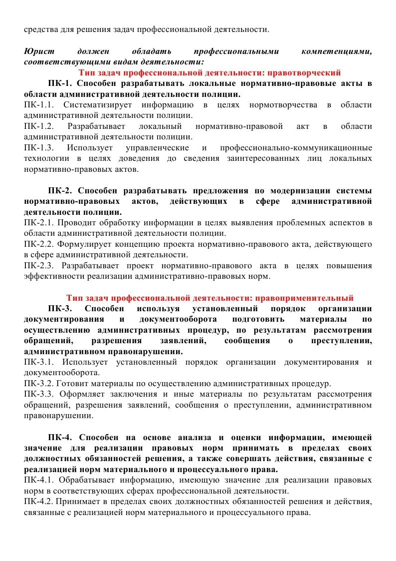 • ОП ПО СПЕЦИАЛЬНОСТИ 40.05.02 ПРАВООХРАНИТЕЛЬНАЯ ДЕЯТЕЛЬНОСТЬ (СПЕЦИАЛИЗАЦИЯ АДМИНИСТРАТИВНАЯ ДЕЯТЕЛЬНОСТЬ ПОЛИЦИИ) СПЕЦИАЛИТЕТ