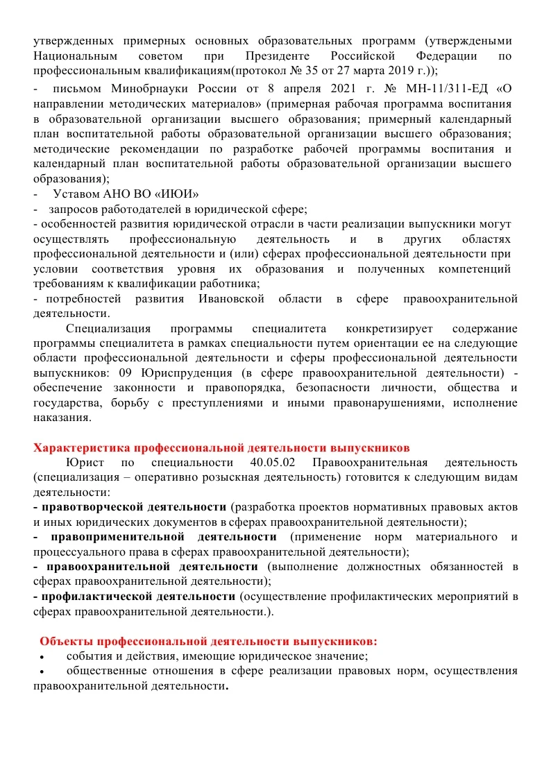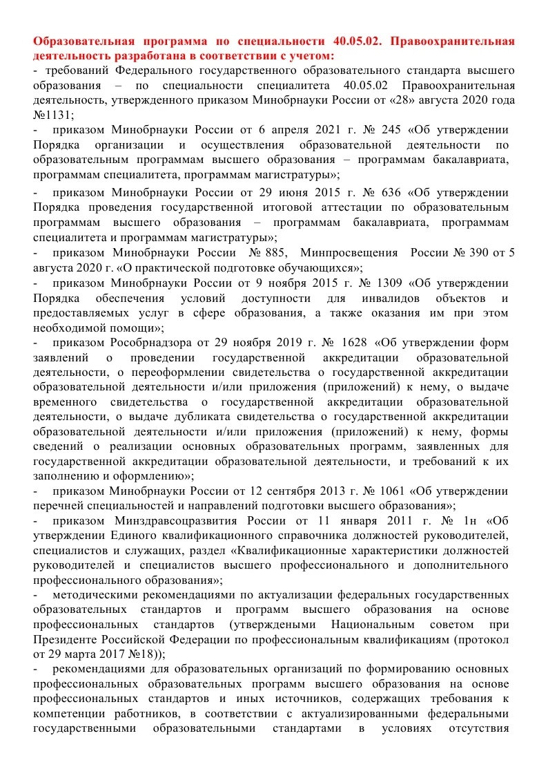 • ОП ПО СПЕЦИАЛЬНОСТИ 40.05.02 ПРАВООХРАНИТЕЛЬНАЯ ДЕЯТЕЛЬНОСТЬ (СПЕЦИАЛИЗАЦИЯ-ОПЕРАТИВНО-РОЗЫСКНАЯ ДЕЯТЕЛЬНОСТЬ) СПЕЦИАЛИТЕТ