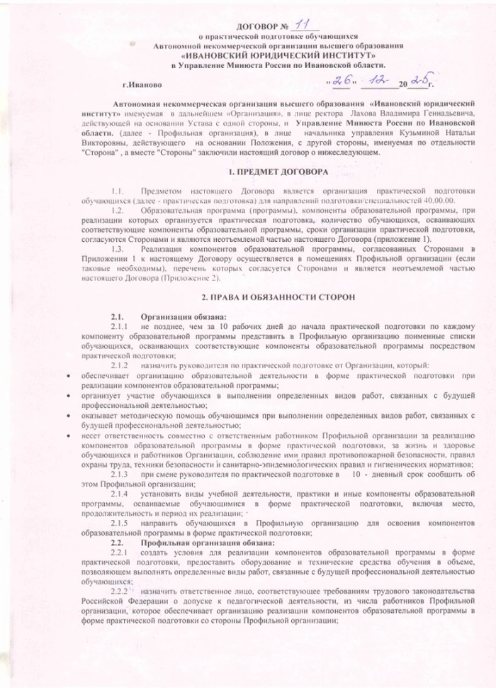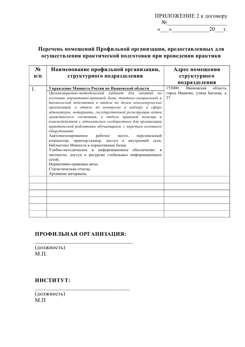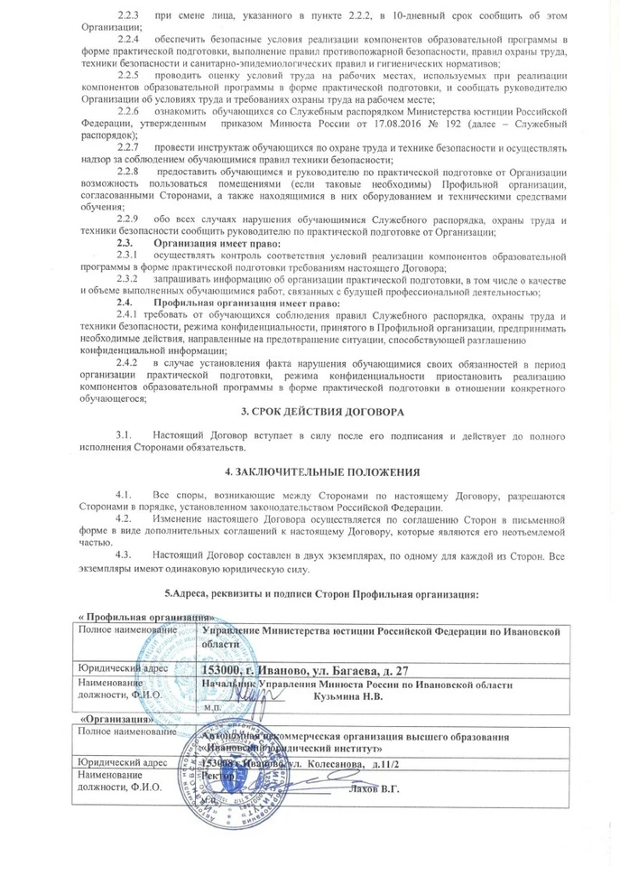 • ДОГОВОР С УПРАВЛЕНИЕМ МИНЮСТА РОССИИ ПО ИВАНОВСКОЙ ОБЛАСТИ