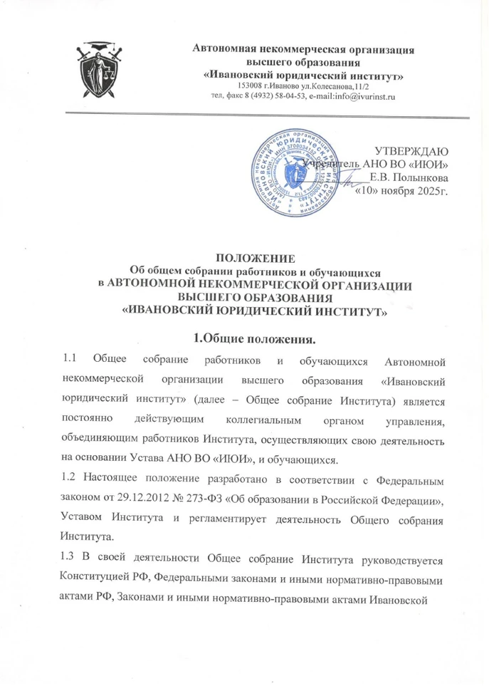 АНО ВО ИВАНОВСКИЙ ЮРИДИЧЕСКИЙ ИНСТИТУТ © 2025