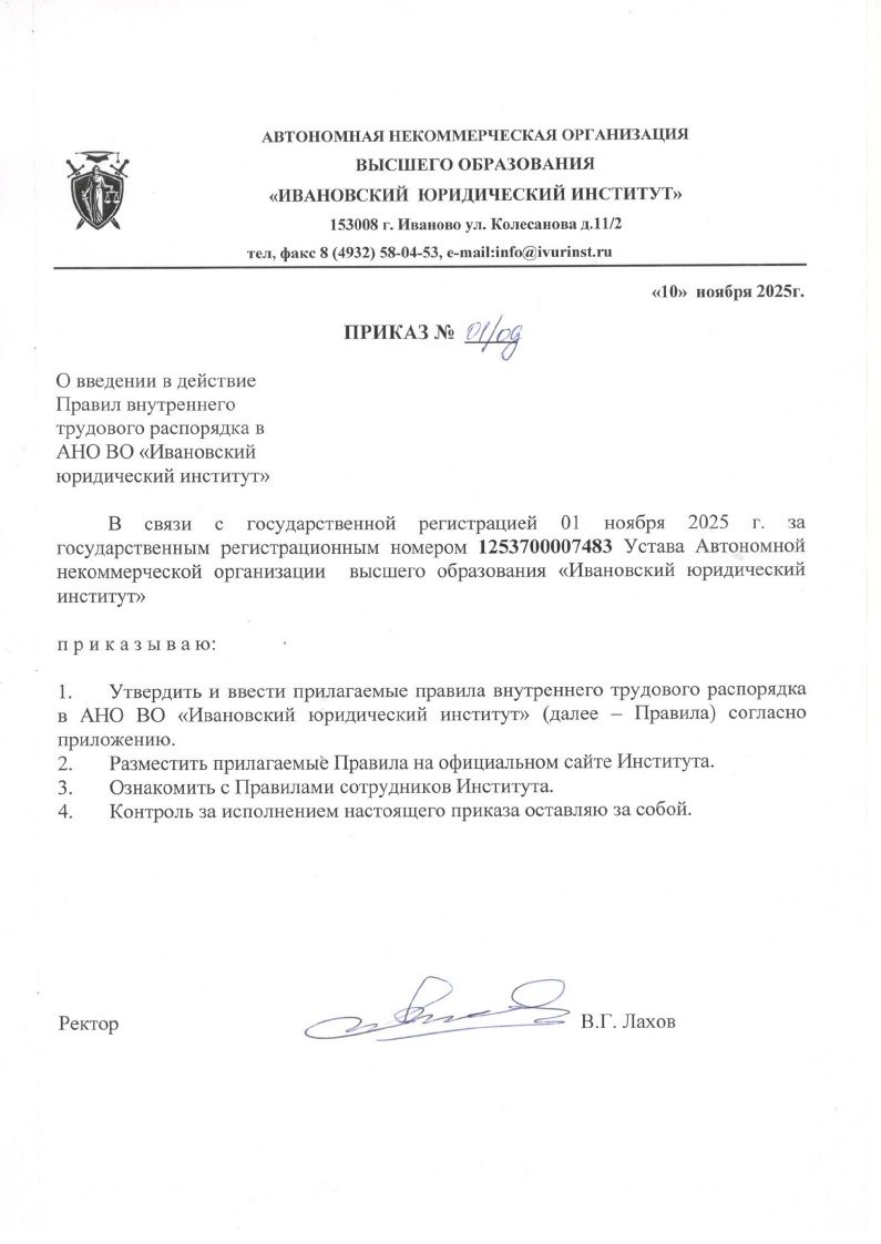 • ПРАВИЛА ВНУТРЕННЕГО ТРУДОВОГО РАСПОРЯДКА ДЛЯ СОТРУДНИКОВ АНО ВО ИВАНОВСКОГО ЮРИДИЧЕСКОГО ИНСТИТУТА
